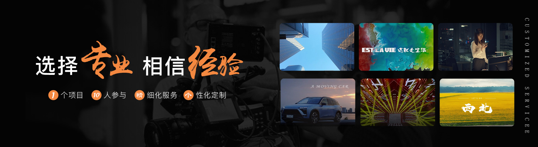 專業致力于廣告片、紀錄片、微電影、專題片、原創動畫、宣傳片等視頻內容的創意、拍攝和后期制作